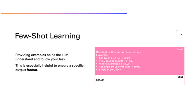 To summarize, a general tip is to provide some examples if the LLM is struggling with the task in a zero-shot manner. You will find that often helps the LLM understand the task, making the performance typically better and more reliable.